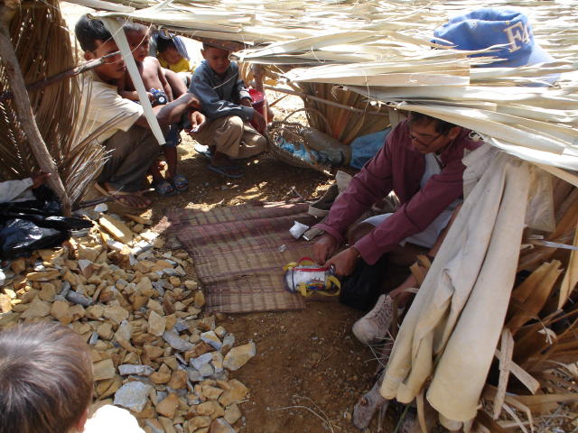 La deuxième opération nous à conduit dans les carrières ou des femmes et enfants, forçats des temps modernes, cassent des cailloux à longueur de journée.Notre action s’est bornée a distribuer des lunettes pour protéger leurs yeux contre les éclats de pierre, à soigner quelques malades et à distribuer quelques jouets. Notre dernière actiona été dirigée vers les villageois affectés par la dernière sécheresse et que nous avons aidés à remplir les formulaires de demandes d’aides. Nous en avons également profité pour remettre des lunettes aux anciens.